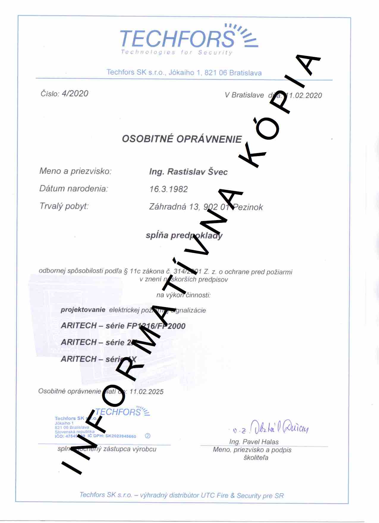 - Osvedčenie §23 podľa vyhlášky MPSVaR c. 508/2009
